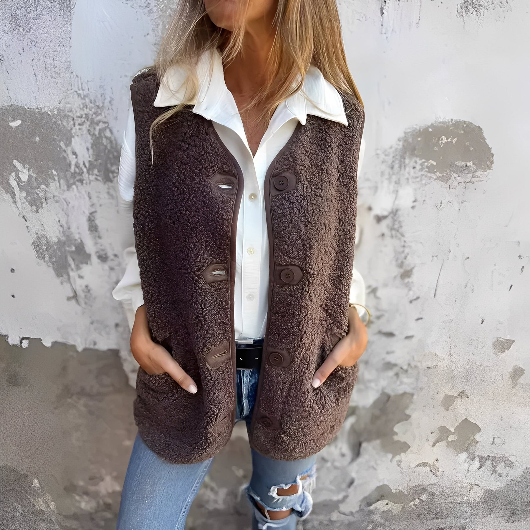 Feel the warmth and elegance in every movement. Nora is more than a vest – it is your companion on chilly autumn days, cozy winter mornings, and when the air is crisp but the sun is still peeking through. With its feminine, sleek design and soft polyester, it feels both lightweight and warming.